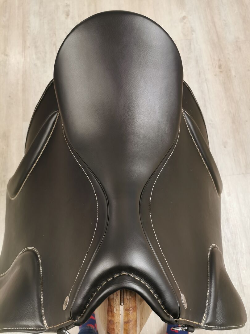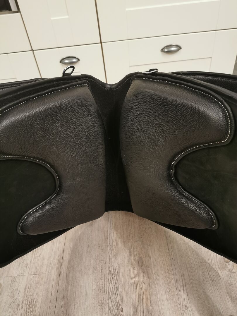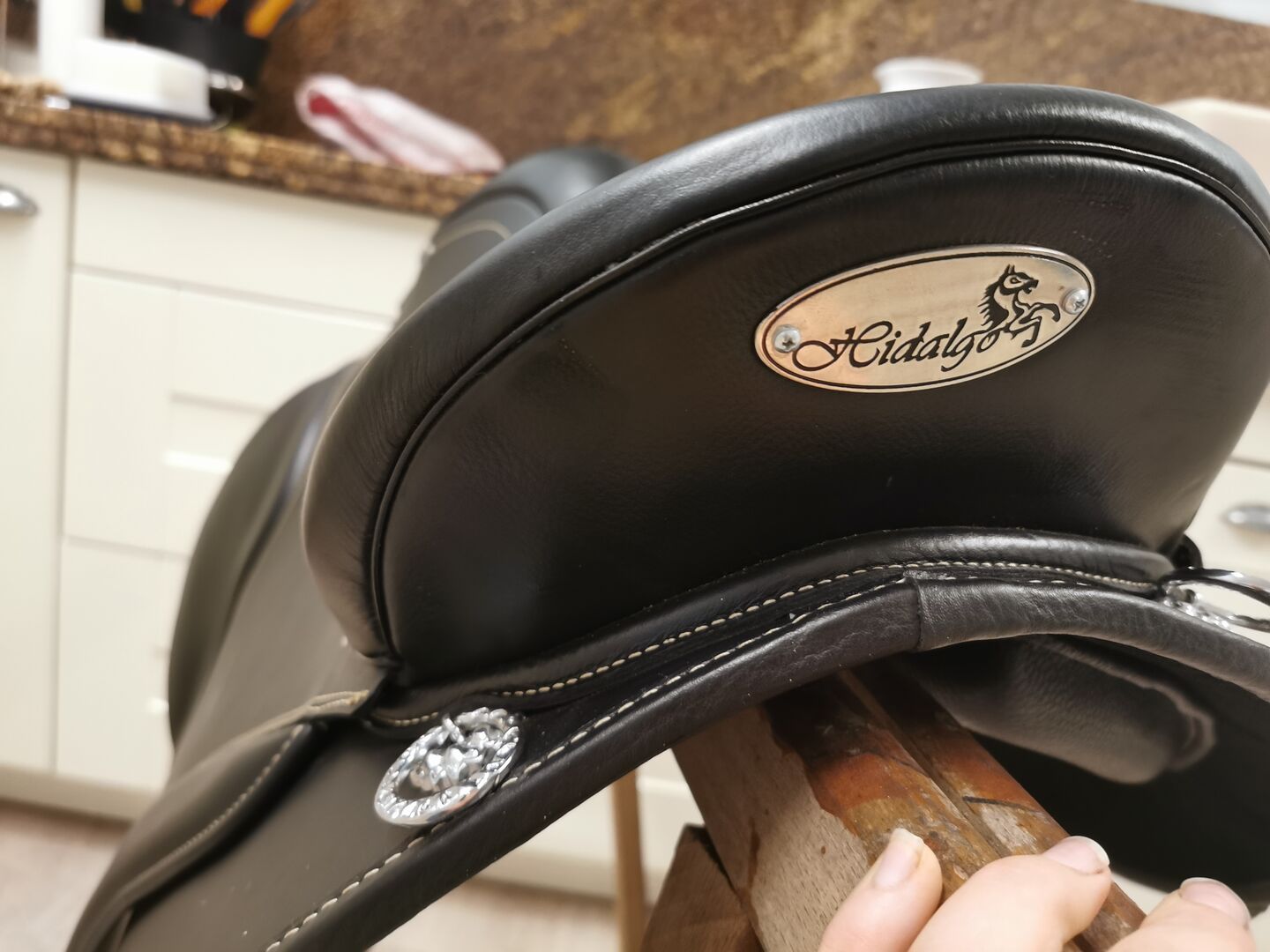 Hidalgo Santiago Leather Tree Saddle - Leather tree saddle model Santiago with a seat of 18.5 inches. The saddle has been delivered in March 2021,invoice for the order in November 2011 is of course available. The saddle was only twice on the horse and has since been stored dry. This saddle has had the girthing changed from V to Y directly by Hidalgo when the saddle was manufactured. The stirrup leathers are available for purchase. Hidalgo writes about the Santiago model: