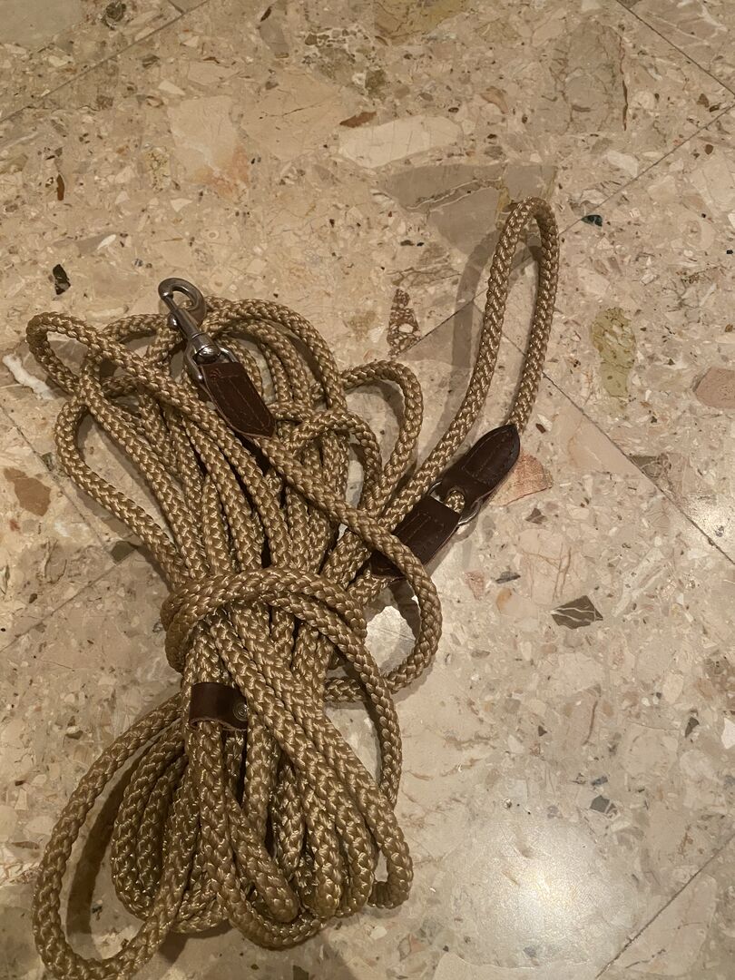 Hillbury lunge from round braided cordage. 11mm diameter, 8m long.