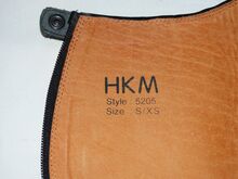 Picture 8-13: - HKM Profi. Model 5205, size N/XS (H/W). - Measured by me: Rear height approx. 30.5 cm without dressage bow (with bow approx. 34 cm), width approx. 30 cm unstretched (outside rum 32 cm). - According to HKM table: Height 34 / width 32. - Without label, but with cover.