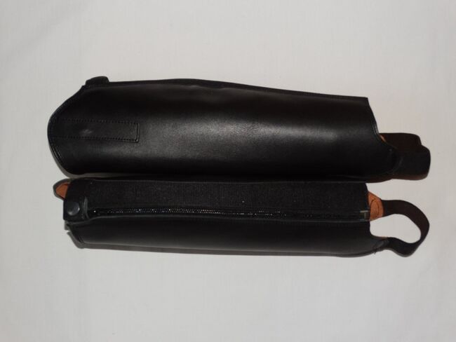 HKM leather boot shafts S/XS or N/XS black chaps minichaps professional model 5205 - I have two pairs of new, black leather boot shafts for a friend to choose from.