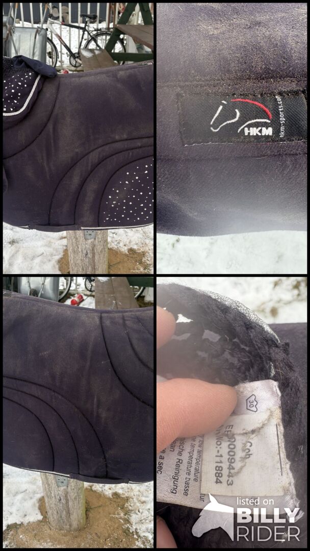 HKM saddle pad+fly hood/dark blue, glitter/VS, Cob - Used HKM, saddle pad in good condition only a little dusty.