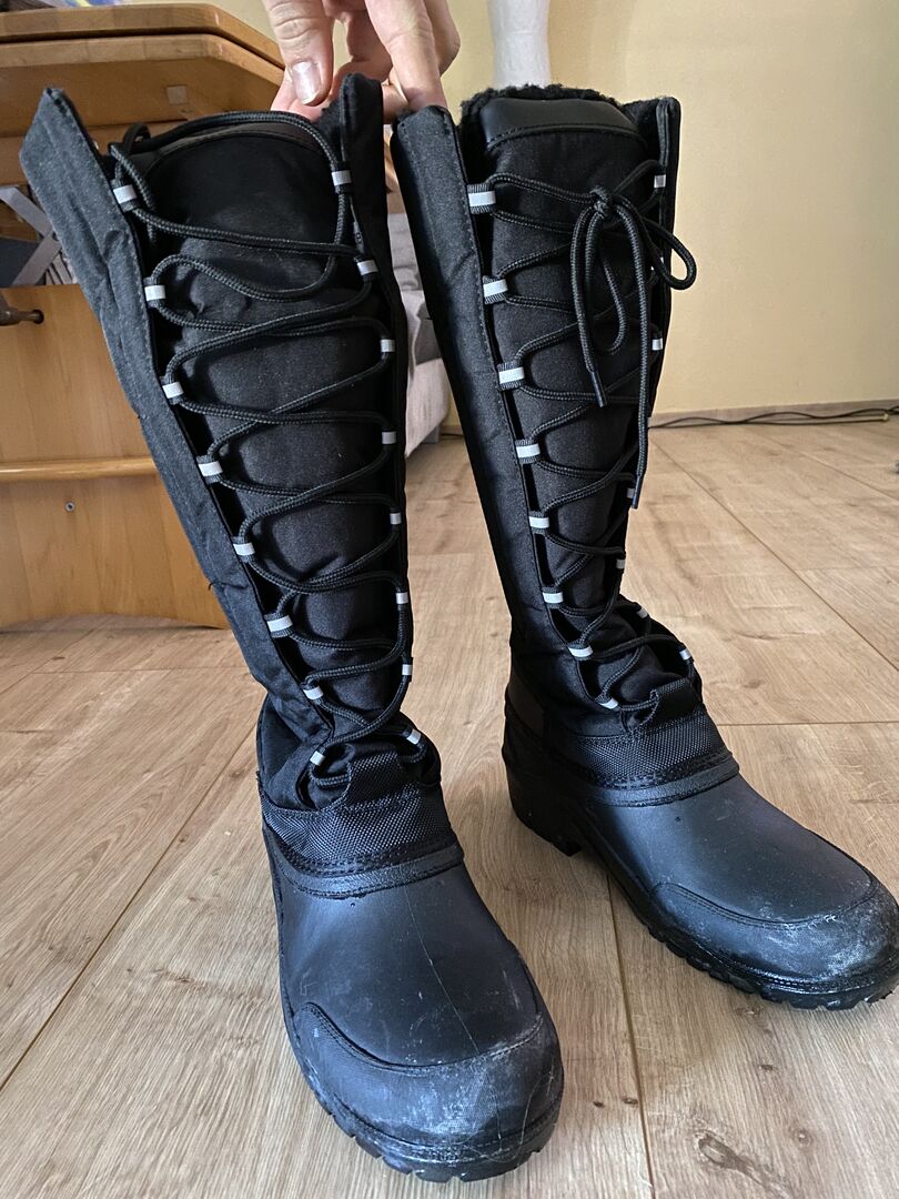 HKM winter boots size 39 - Sell here my HKM Thermo Winter Boots "Husky ". Got them in 2020 as a gift for Christmas. Have worn them since then no more than 3 times. They are ideal for the cold days in the stable or when riding ☺️ The calf width must be adjusted only once by the lacing in front and then you use comfortably the rear zipper to put on and take off.