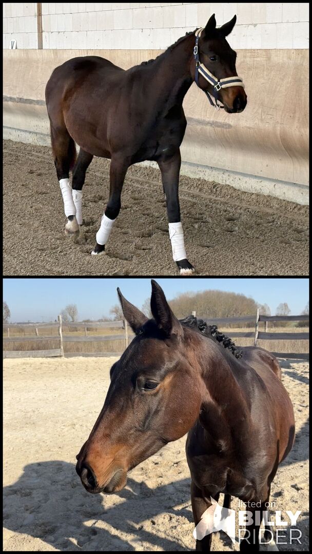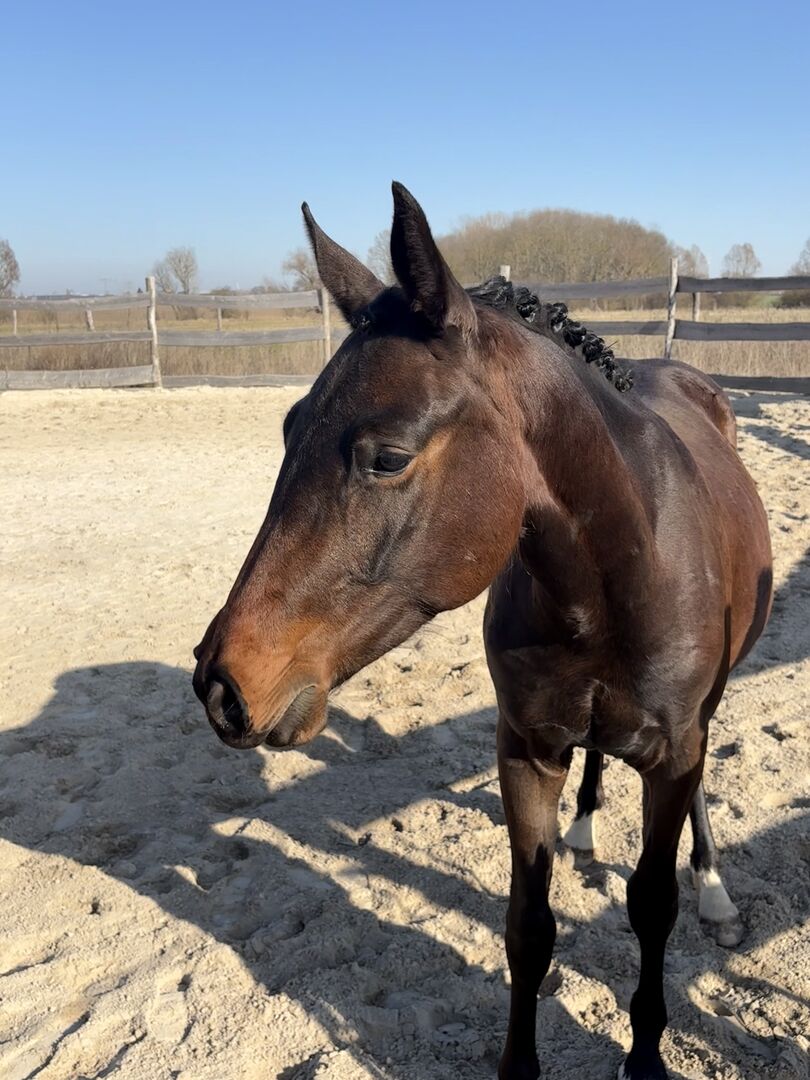 I am selling my 2-year-old gelding Diamant du Soleil (nicknamed Monty). He is an absolute heart horse - always courageous, curious, attentive, willing to learn, honest and cuddly. He is halter trained, goes well on the hanger, is regularly shown at the farrier and is vaccinated and microchipped. He is already familiar with many different environmental stimuli through walks, playfully approaching poles and different surfaces. He is compatible in the herd with animals of the same age, but also with older animals.