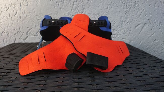 Hoof boots Flexboots FlexPony 100 - I am offering my used FlexPony hoof boots in size 100. Profile still very good, see pictures. I have made a small incision in the front, there is a cut-out so that the material does not tear. I wanted to get the hoof further into the shoe, but changed to a different model, so the shoes can go further. There is also a pad in orange. Please contact me if you have any questions. Shipping costs will be added.