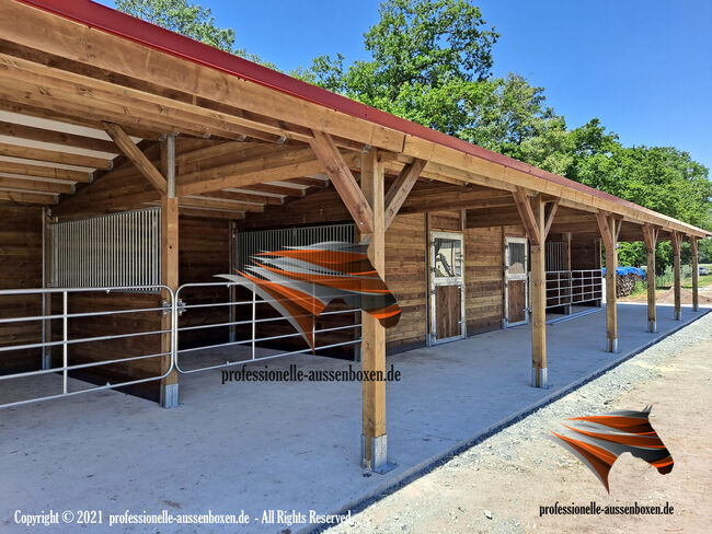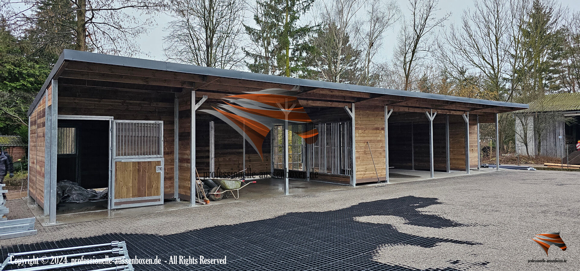 Horse box & stable construction | Building a horse stable - Buy outdoor boxes & ideal open stables - Web: www.professionelle-aussenboxen.de