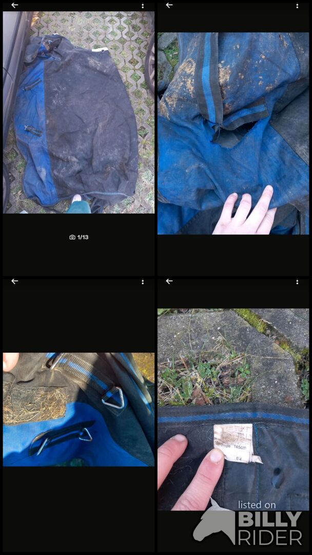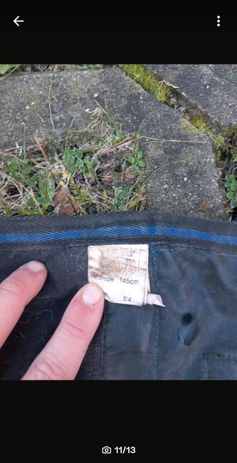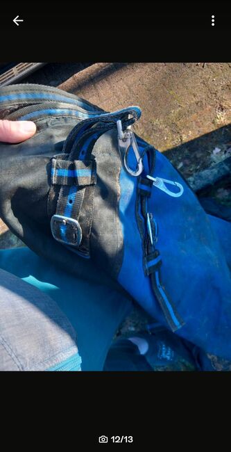 Horse rug polar fleece 145 with neck section - Pasture rug with polar fleece in 145 with removable neck part. The neck part has only been on the horse once. The rug unfortunately has a tear on one girth (see picture), but can be easily sewn by hand or with a sewing machine& the carabiner on one leg strap is broken (see picture). New leg straps are available&can be bought for 10€. Otherwise no damage. The blanket is from RL24 and the new price or purchase price was 69,95€. Please send me price suggestions. Private sale, therefore no return, guarantee or warranty. Preferably pick up in RE-Nord or shipping against payment of the costs possible. Private sale, therefore no warranty, guarantee or return.