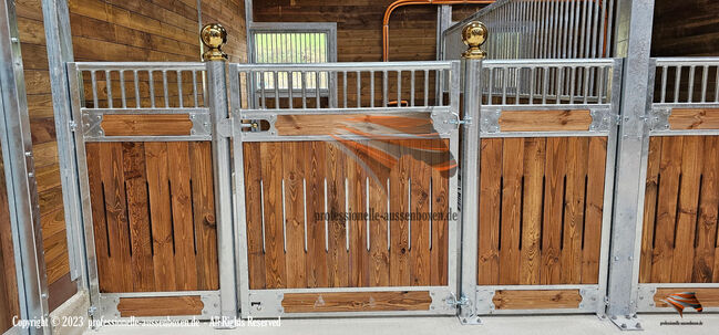 - outdoor stables - indoor stalls - shelters - hayracks Our stables stand for: - Highest quality - Maximum snow load resistance Equipment of all models: - Solid, hot-dip galvanized steel posts - Stable doors with separate door frame, reinforced hot-dip galvanized steel construction and laminated safety glass in the upper area - Brown, impregnated tongue and groove boards