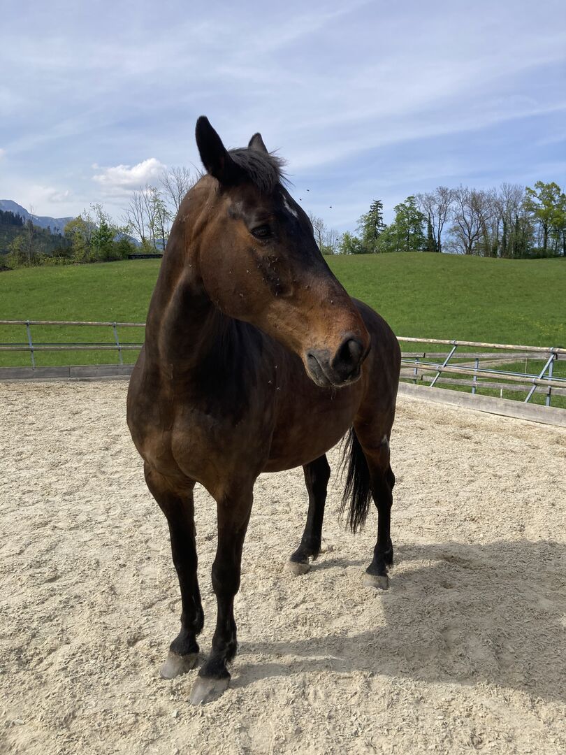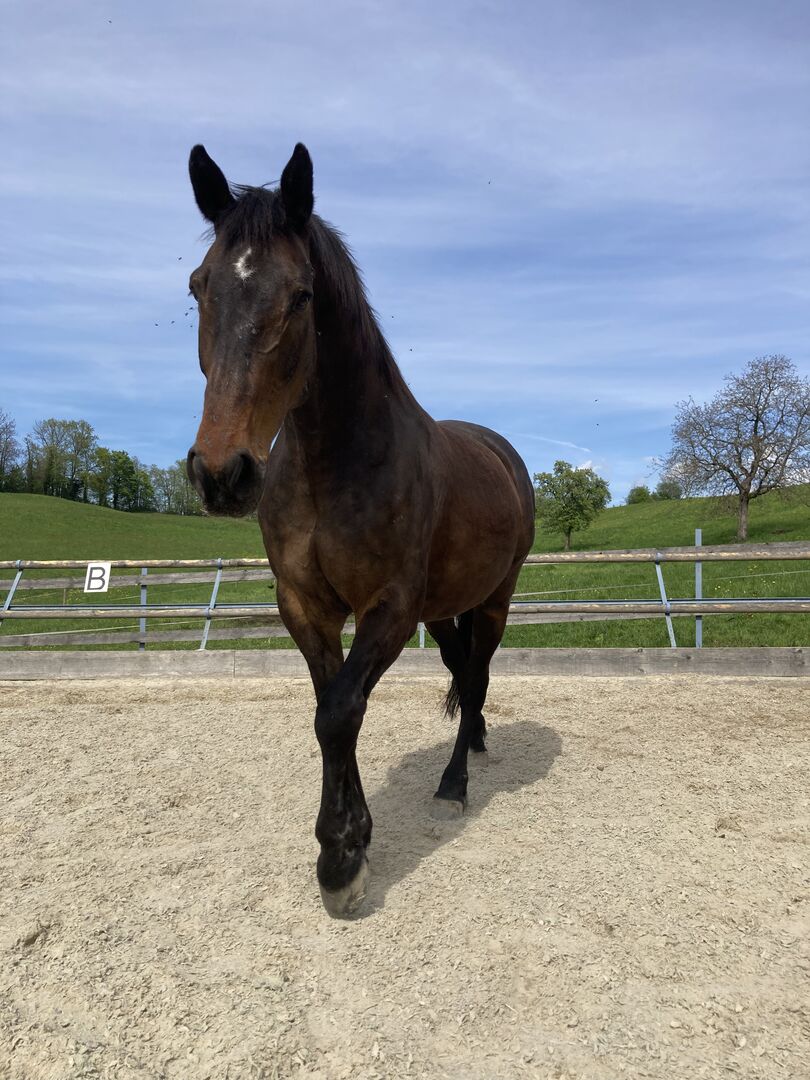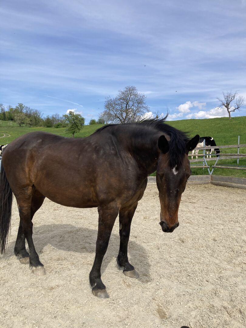 Cobelix is sensitive and attentive, low in rank. He shows no naughtiness, wants to please, but is very skittish. He needs a person who gives him security and does not overtax him. He can only be ridden to a limited extent and is only suitable for light and well-balanced riders. Has pulmonary fibrosis. Has been ridden English, at the riding arena. Riding/walking would have to be practiced carefully with him. Will be given free of charge to someone who appreciates him for his character and does not focus on riding. If you are interested, please contact us for further information/get to know him.