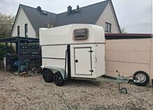 Horse trailer Rettenmaier 1.5 small horses - Selling our 1.5 horse trailer from Rettenmaier with new TÜV for small horses, ponies etc. due to an increase in horses. In the course of the TÜV, the brake cables, towing jaw and four tires were renewed. The dampers of the loading flap were also renewed and the trailer has a very low unladen weight and can be maneuvered easily by hand. More detailed data photo approval. Center partition available but not installed. Tack room, side exit, feed trough, new anti-slip surface, side storage box for shovel etc. Please contact us if you have any questions.