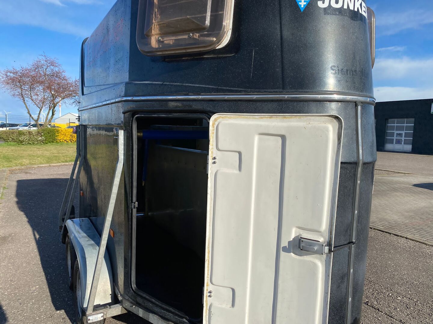 horse trailers - The trailer convinces with its height and offers even large horses (stick measurement 1.80m) enough space. It is equipped with 2 feeding places and a tack room with 2 saddle holders, 2 bridle holders and a mirror. Furthermore, it has an indoor camera via WiFi, which produces a clear image during the day as well as at night. In addition, the safe transport of young horses is ensured by an existing foal grid.