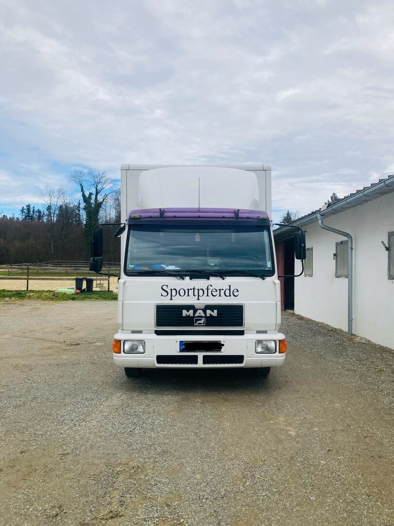 - Parking space for up to 4 horses - separate tack room - Passage door from the tack room to the horse compartment - Opening from the driver's cab into the tack room - Folding steps - External compartment - Water tank incl. pump and spray hose - 5x windows + 1x skylight - 1x window in door to tack room - Large awning (1 year old) - Trailer coupling - Interior height = 2.35m - Length of transverse parking space = 2.45m - Length of rear parking spaces (from wall to breast bar) = 1.95m - MAN L2000 - EZ: 10/1998 - Euro 4 - 6-speed manual gearbox - approx. 347,000 km (truck is still in use, therefore mileage may still change) - TÜV was made completely new - Turbocharger, fuel pump, rear brake disks + rear brake pads and rear wheel bearings have been replaced. - Floor in the horse compartment is top and was repaired 4 weeks ago