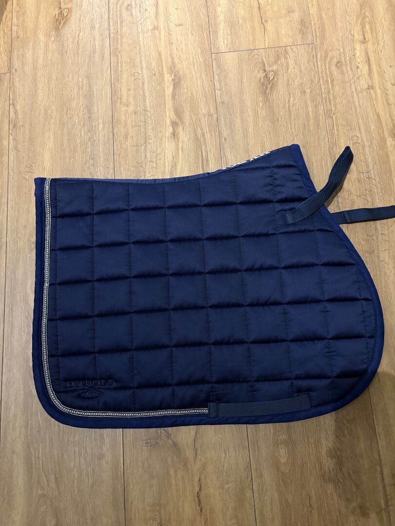 HV POLO saddle pad blue - This saddle pad has been freshly washed and is in very good condition. It has not been used for years and is too good for the closet.