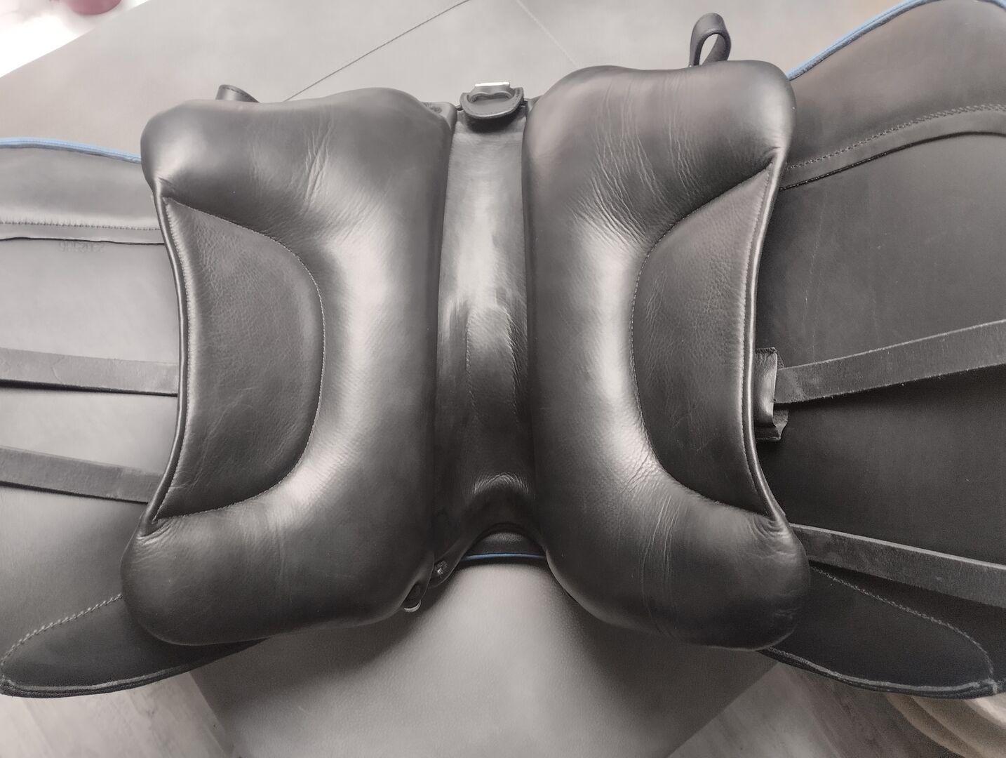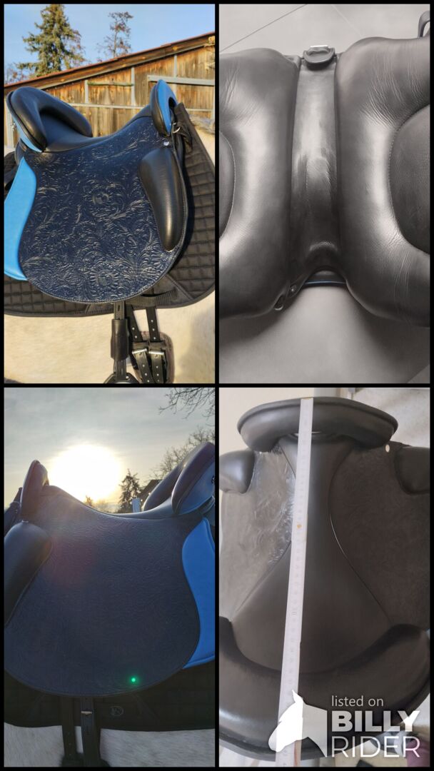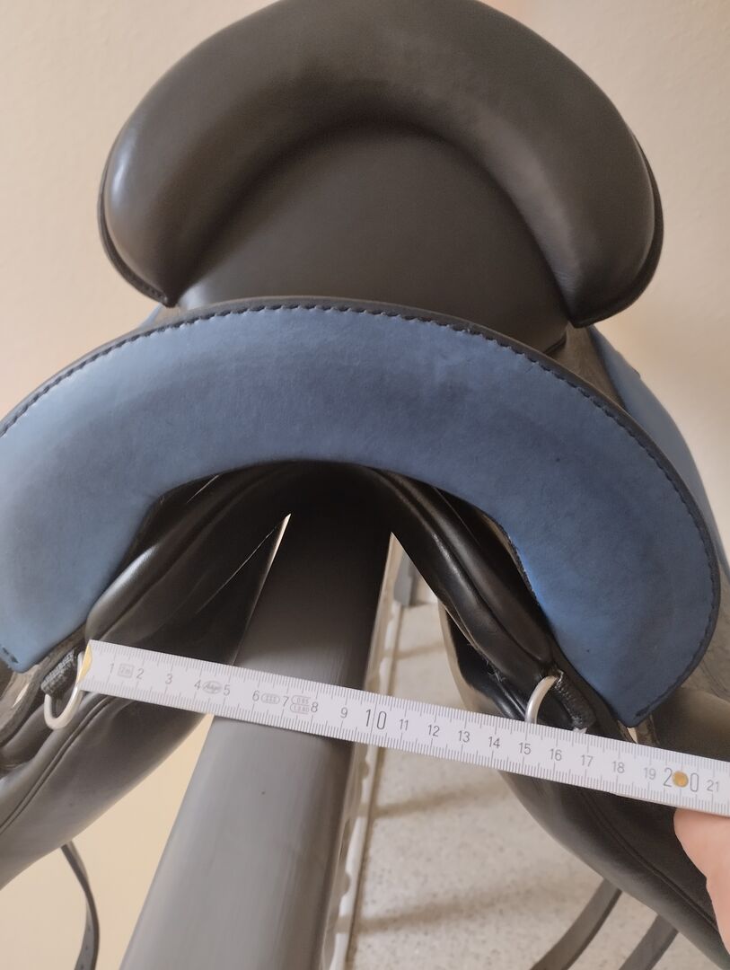 Ibero Amazona Comfort 18.5 - For sale Ibero Amazona Comfort Premium Line Baroque 18,5 in black with removable galleries outside in blue. Saddle flap Montana embossing, rear part of saddle flap also blue. Vaquero compact pad with shortened bars. Soft seat with Amazonas solution. Saddle was delivered in December 2023 and only used for approx. 6 months. Saddle pass and original invoice available. Saddle fits short horses due to the shortened bars, saddle tree is cold adjustable.