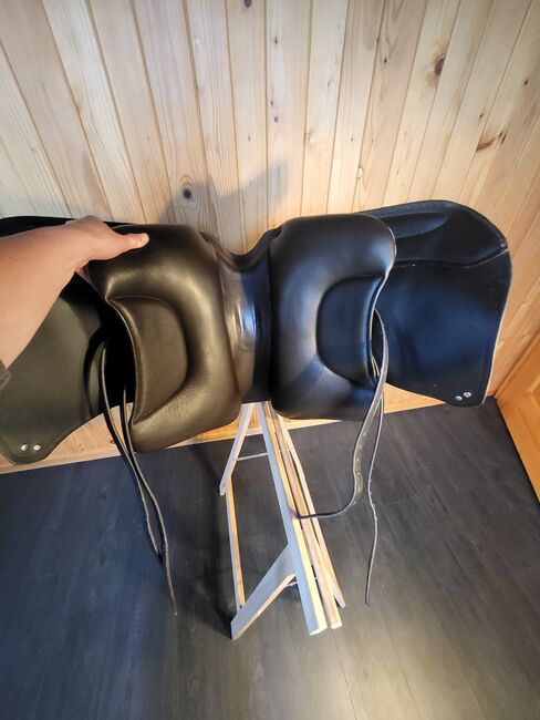 The saddle has a saddle tree with adjustable gullet width.