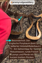 - An extra-wide chamber and the special English pony tree ensure a secure hold, even on very round-ribbed types. - Not a construction kit. Not a bar product. Specially made for horses with low withers such as Icelandic, Haflinger, Tinker, or similar... - Pony girth with front girth strap to prevent sliding forward - Sheep's wool padding for optimum back adaptation - High quality genuine leather - Comfortable soft seat - without constricting knee rolls - Many packing rings for long rides and unforgettable adventures