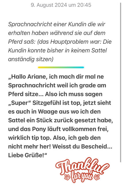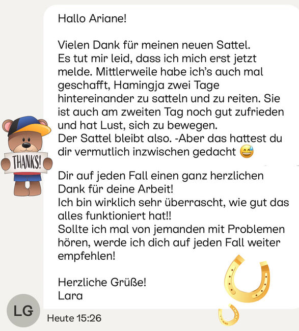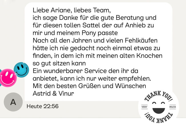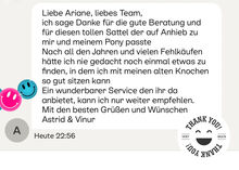 Send 2 photos of your horse (side & back) via classifieds or WhatsApp to 01703445541. You will receive a free fit check and, if a saddle is suitable, non-binding purchase suggestions.