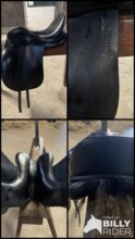 Ikonic dressage saddle 16,5" - I offer here for sale my dressage saddle brand Ikonic with a seat of 16.5". I myself bought him in 2019 from an Ikonic dealer (NP: 2,300€). He was always well maintained and stored dry. There are slight signs of use, but no scratches or the like (see photos). The gullet is interchangeable, currently the size M is installed. I have additionally a second gullet in MW, which I would give to it.