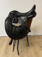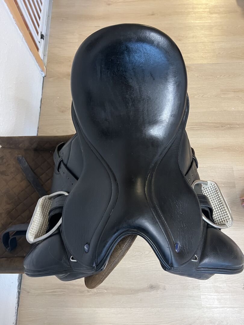 Ikonic Dressage Saddle Light 17.5 - Selling my Ikonic dressage saddle Light. 17.5 seat. It currently has a gullet plate in size M, but this can be replaced quite easily. The saddle naturally has signs of use and a few small white marks on the seat which are not noticeable. The saddle is sold with stirrups (straps).