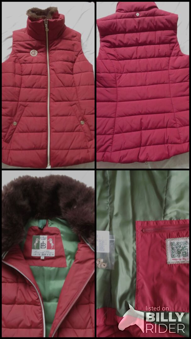 Iris Bayer riding vest vest Gr. 38 (M) red NEW - Offer a NEW great riding vest from Iris Bayer in size 38. It falls like a size M, is dark red, chest width approx 47cm. It has many nice details and a removable faux fur collar. Pick up or shipping