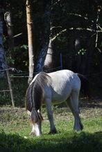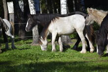 Irish Cob Tinker stallion Buckskin tiger pinto - Buckskin tiger pinto colt is looking for his new home. Toffee's dam is our Few Spot mare and his sire is a licensed Buckskin-Pearl stallion.