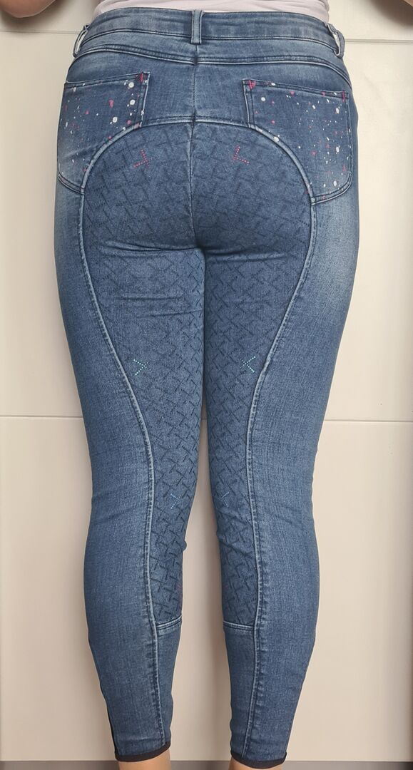 Jeans breeches for children - Sell here a little used denim breeches. It was worn only 3 times. Everything works. It has two pockets in the front and back decorated with rhinestones. The breeches are very comfortable when riding. Size: 176 Original price was 75€ Price is VB Prepayment
