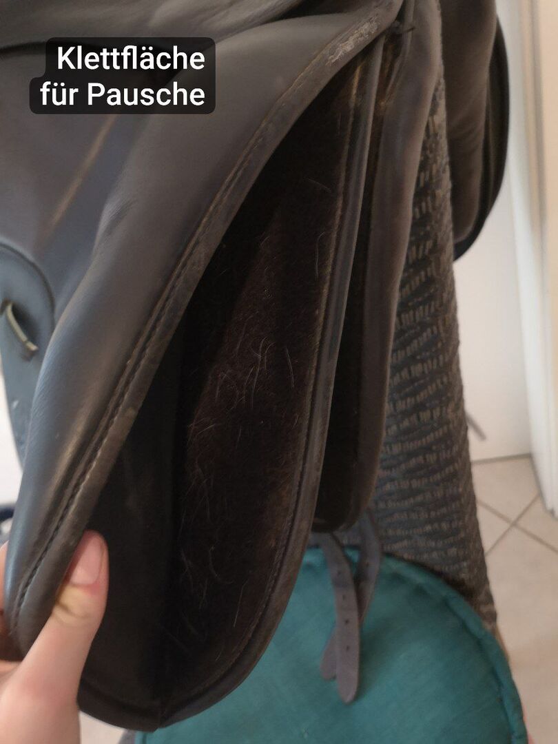 Black dressage saddle from the renowned German saddlery Jochen Hennig for sale. It is very comfortable, thanks to the mono flap you sit close to the horse. It has a comfortable special spring tree (patent 3702011) which also allows subsequent adjustment for changes in the anatomy of horse and rider. The manufacturer's individual saddle number clearly identifies it. I didn't use it much while my young horse was being trained. Previously it was on a sporty pony for which it was made to measure, but it immediately fitted my slim Hispano-Anglo-Arabian like a glove. As he is now more of a baroque type due to significant weight gain, it no longer fits. The saddle originally had silver-colored piping, some of which is still shiny and some of which has taken on a beautiful ivory shade. There is a heart with glittering stones at the back. Some have become a little dull, one is missing. This should be easy to replace, it wasn't important to me when I was training young horses. The saddle has signs of use but no other damage. The four girth straps show discoloration, but the holes are in good condition. There are rings at the front for a panic strap, saddle bags or breastplate. As far as I know, it has 16 or 16.5 inches (no guarantee). Thanks to the option of Velcro straps, it can be perfectly adapted to the rider and used for various purposes. It has been freshly cleaned and has always been stored with a protective cover and stirrup protectors, well ventilated and regularly maintained. It can be taken away and put on for a deposit of the purchase price. I will also ship it if you buy it now. This is a private sale, therefore excluding warranty/guarantee. Accordingly, no complaints or returns.