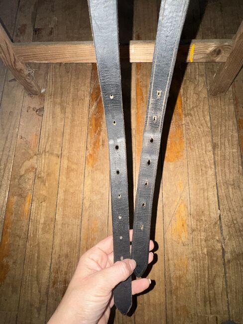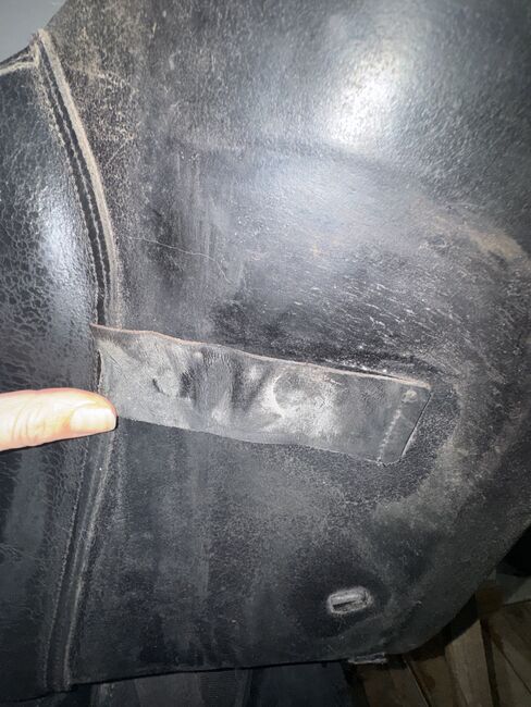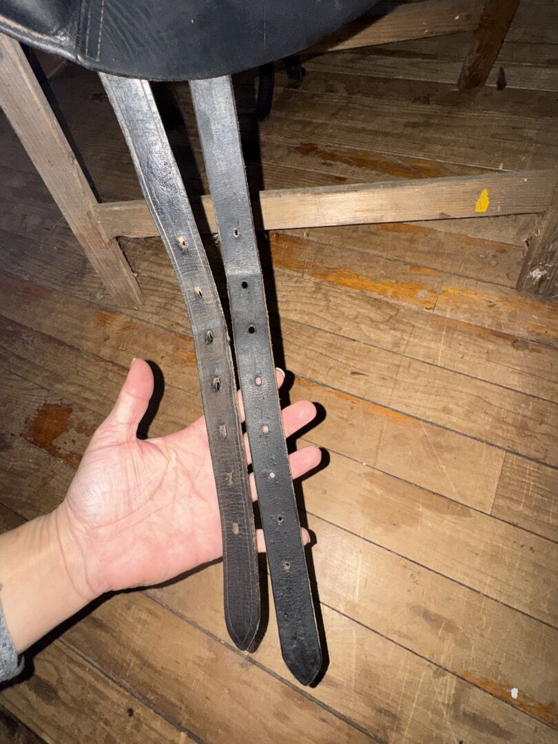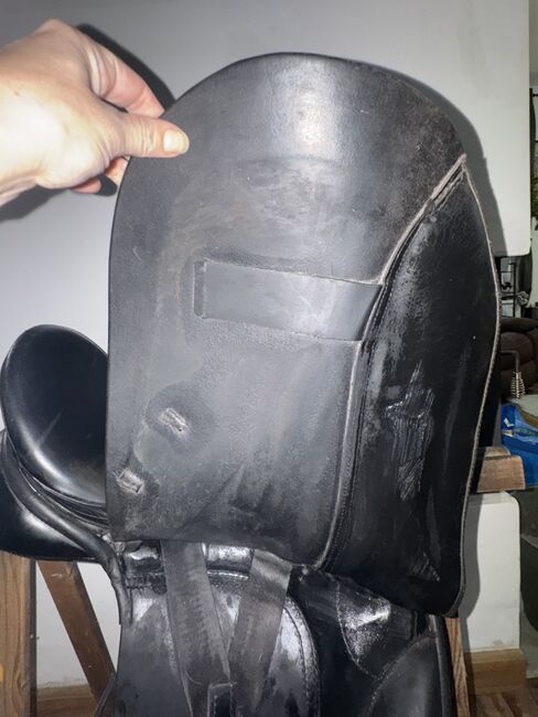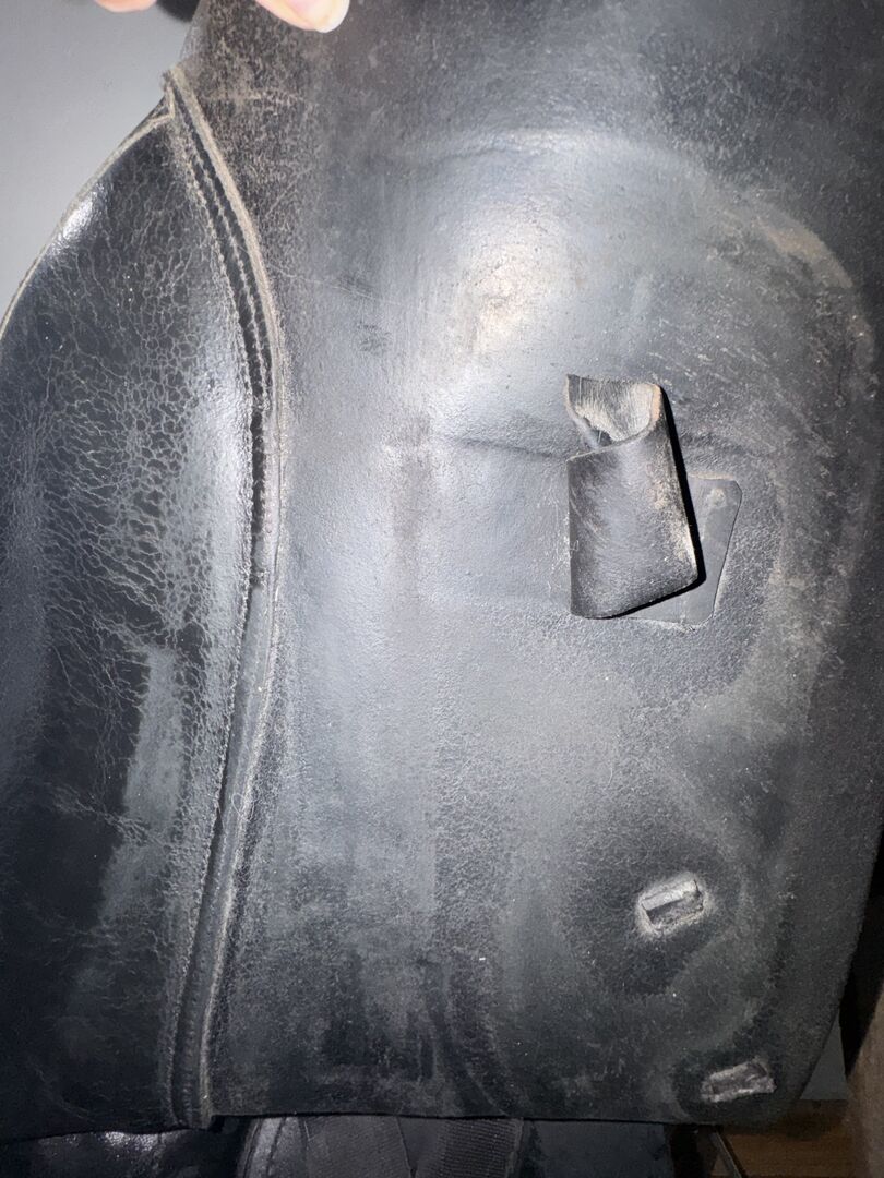Unfortunately, the saddle also shows a few signs of use, there are various scratches on the top of the back pommel (the youngster unfortunately got to it and tested his teeth in leather) and there are also scratches on the seat and the saddle flap, but these have never bothered me. The girth strap guide under the left saddle flap is loose, but I have never used it. The straps themselves are in perfect condition.