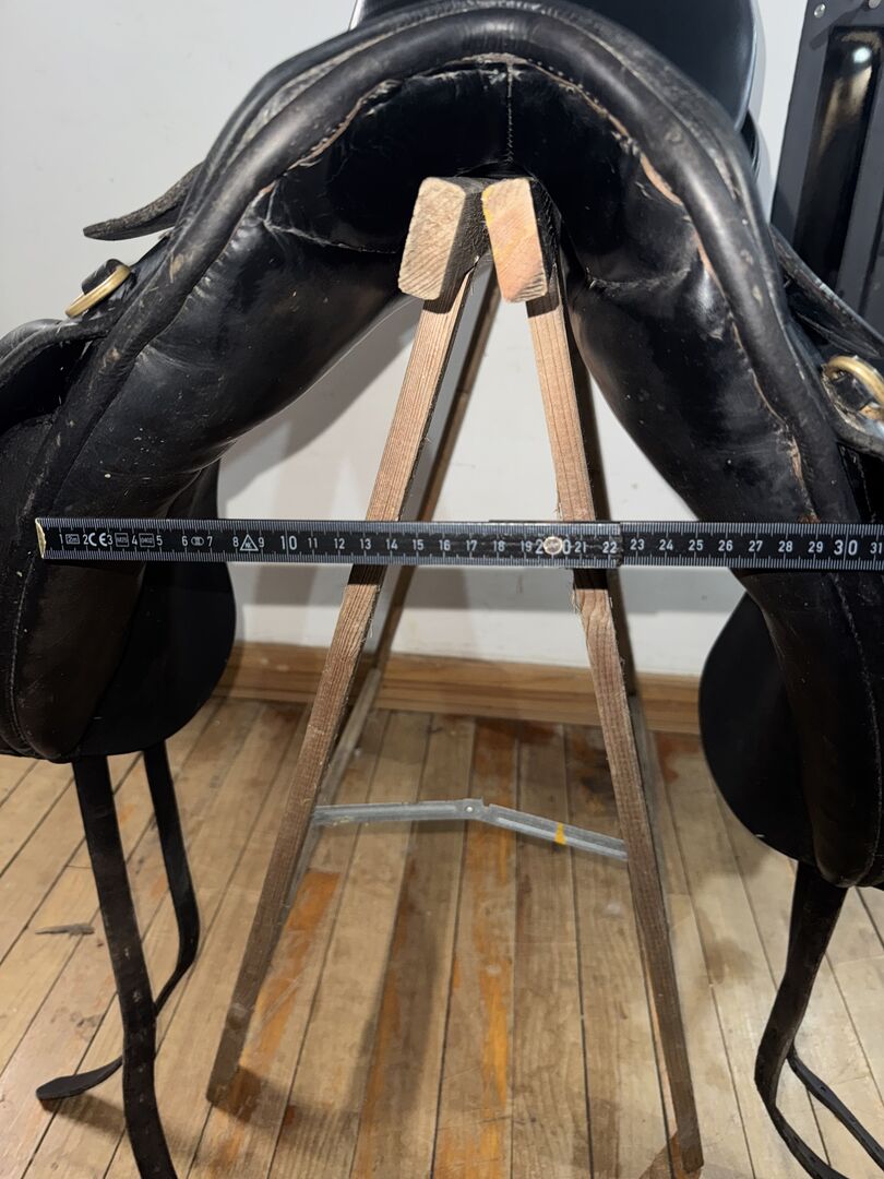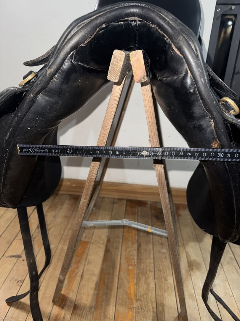 Unfortunately, the exact model cannot be determined as the imprint on the saddle flap can no longer be read, but it is probably the Saphir model, the chamber width seems to be the stamped 4, in any case the chamber is quite wide, the saddle was on an old type Tinker with broad shoulders and a broad back.