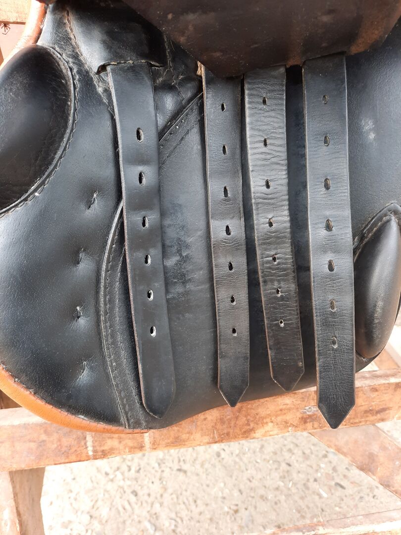 Jumping saddle 16/33 - Offer a gladly used jumping saddle, KW ca 33, short contact surface. Was with us on a final mass pony. The girth straps are in order, if necessary, the saddle could be re-padded.