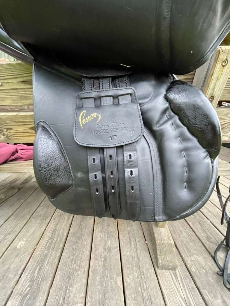 Jumping saddle Pessoa - Selling my very well maintained jumping saddle from Pessoa. Model Don Neco in the color black. The seat has a size of 17" and the chamber width is specified as size M. I can still take the exact measurements. Unfortunately my gelding has outgrown it and needs a new saddle. The saddle has been used very little and is therefore in perfect condition. I have always found it very comfortable to ride. Please contact me if you have any questions.