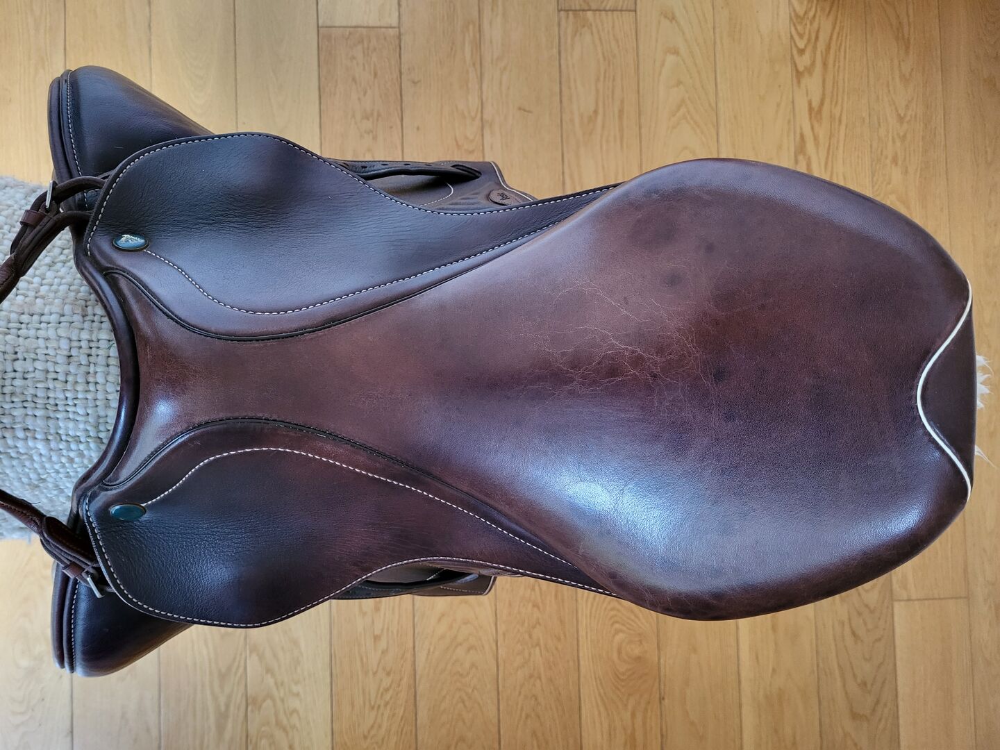 Jumping saddle Prestige Versaille in tabacco - I sell here my little used jumping saddle from Prestige. The short bridles have been replaced by long ones for short girths. Incl. matching stirrup leathers from Passier and stirrups from HS Sprenger.