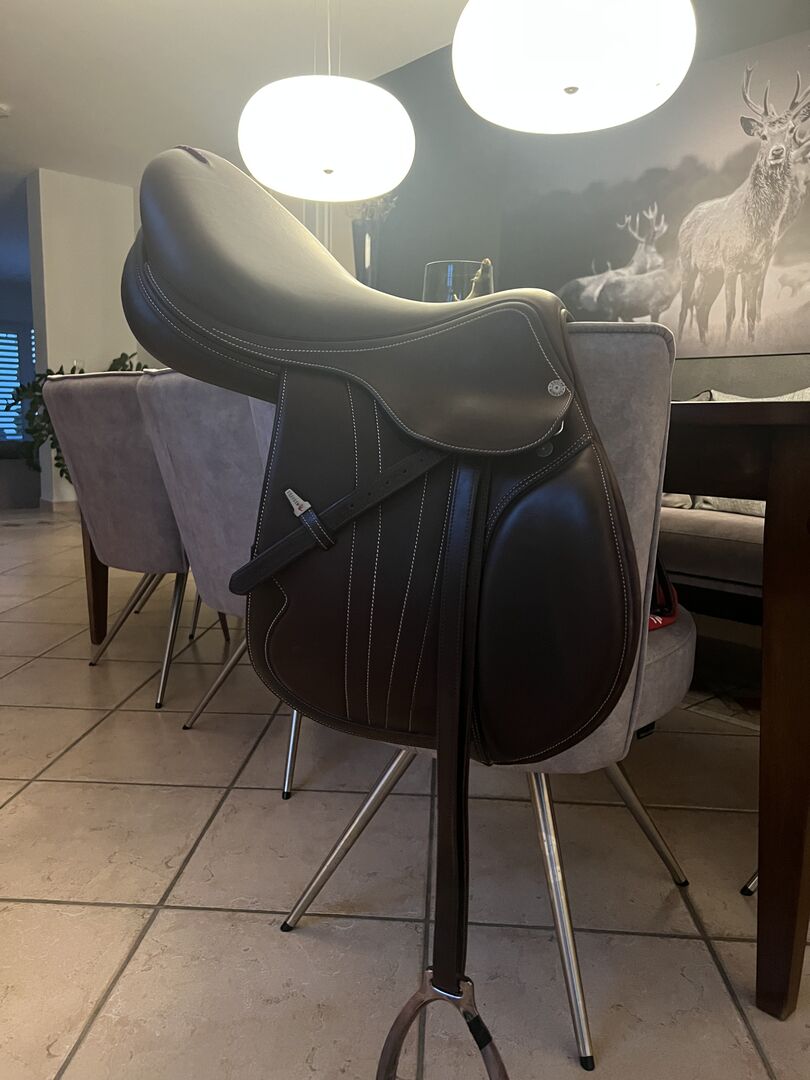 Jumping saddle Selleria Equipe EK GO Special 17,5 +1 +1 - I am selling the little used Selleria Equipe jumping saddle shown above, as I bought it second-hand myself and it will unfortunately become too tight for my 4 year old horse. The previous owner was extremely careful with it and only used the care products from SE. She also rode the saddle very little, see pictures.