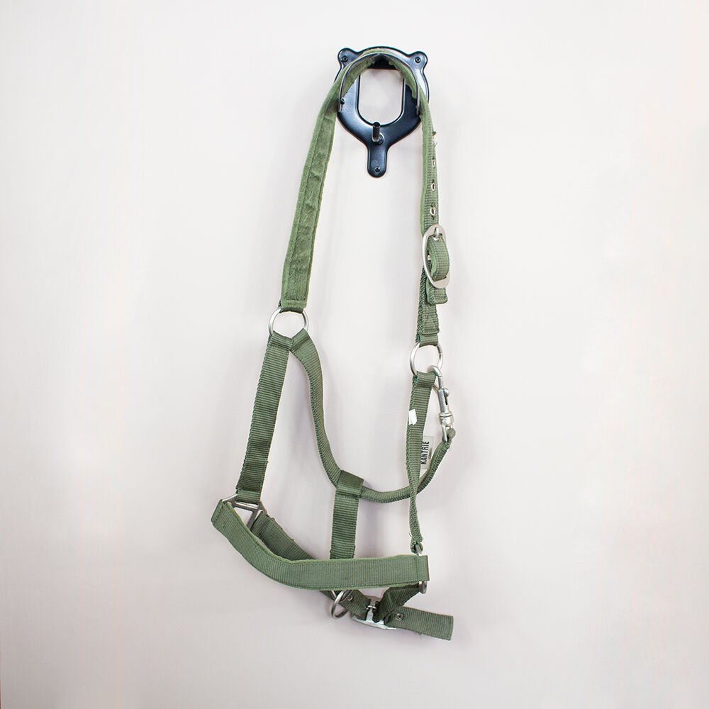 Kantrie halter "Classic" olive green VB - The beautiful olive green halter from Kantrie is the perfect companion in everyday life. It is perfect as a stable or pasture halter. The halter is adjustable at the neck and noseband and thus fits many different horses and ponies. It has size VB and is olive. It has a soft lining and the fittings are matted. The halter shows general signs of use. To the seller's offerlaunch