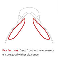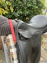 - Generous seat (44 cm as the crow flies from front to back) - adjustable gullet width with different gullet plates KW 30 - KW 36 - red (KW 33) and orange (KW 34) are included - Padded panels are designed for horses with a high (also long) instep - softly padded saddle panels (can be worked on by the saddler) - wide vertebral canal - straps can be looped in at various positions - Velcro surface for various Velcro pads (a pair are included) - Full leather (partly smooth leather, partly doubled)