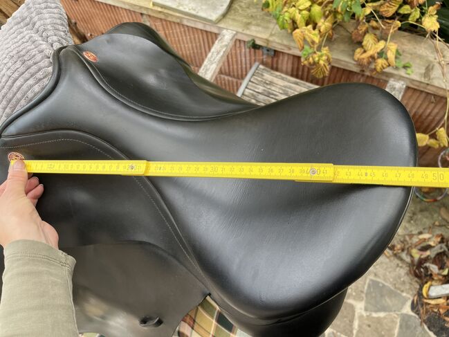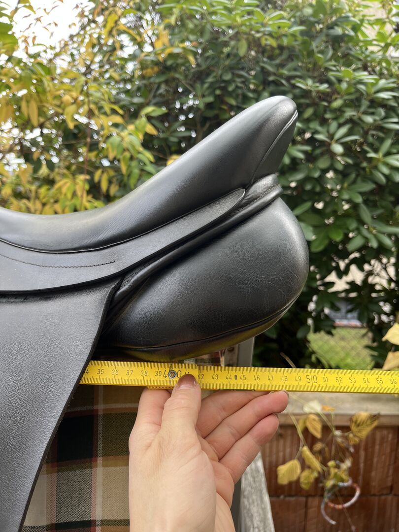 Dimensions: - generous 18" - rather 18.5" - seat (44cm as the crow flies from front to back) - Support on the horse's back approx. 46cm. - Chamber height no matter which gullet plate is used: 8cm
