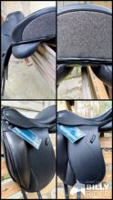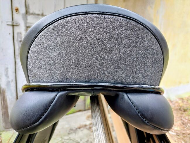 Dressage saddle with deep seat and cut back chamber. Large knee rolls with anatomically pre-shaped saddle flap provide excellent support for the rider's legs. The wide wool panel offers the possibility of individual adjustment.