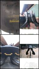 With stirrup leathers