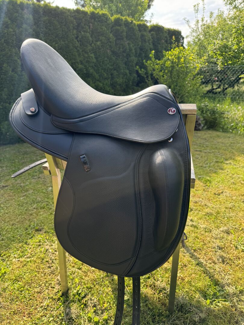 Kieffer Saddle Brugge 17" - Purchased in August 2023, hardly used. Very comfortable. KW wide, cold adjustable, well suited for strong horses with short backs. According to the manufacturer, well suited for Ibero and Arabian horses, sporty Haflingers, Friesian and Baroque horses as well as light cold bloods. Details in black lacquer (forepart, stirrup bars). Seat size 1 - 17". Private sale. NP approx. 3000€.
