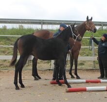 His dam is BENAZIR - registered in Mare Book I at the ZfdP - a 6-year-old bay thoroughbred mare of approx. 160cm. Her movements are controlled and ground covering. She is a spirited, but never headless mare with a wonderful character, honest and decent.