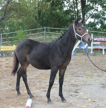 Knabstrupper stallion weanling - WüPie's VIKTOR - born 05.02.2025 - is registered with the ZfdP as a Knabstrupper with 7.3 - still dark bay - but : HE'S FARING AROUND ! sporty model, a self-confident colt with lots of charm and wit - well proportioned - 3 well-regulated gaits, powerful and persistent.
