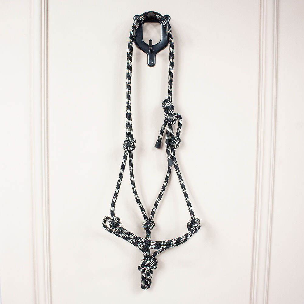 Knotted halter black and white VB - The beautiful knot halter in black and white is ideal for riding, leading or for ground work. The halter is infinitely adjustable. It has size VB. The knotted halter is new.