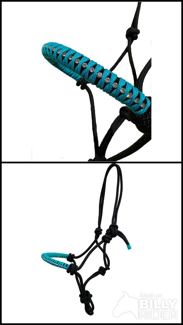 Glittering stones on the noseband, double noseband and neck strap, stable rope quality made of robust PP material, individually adjustable