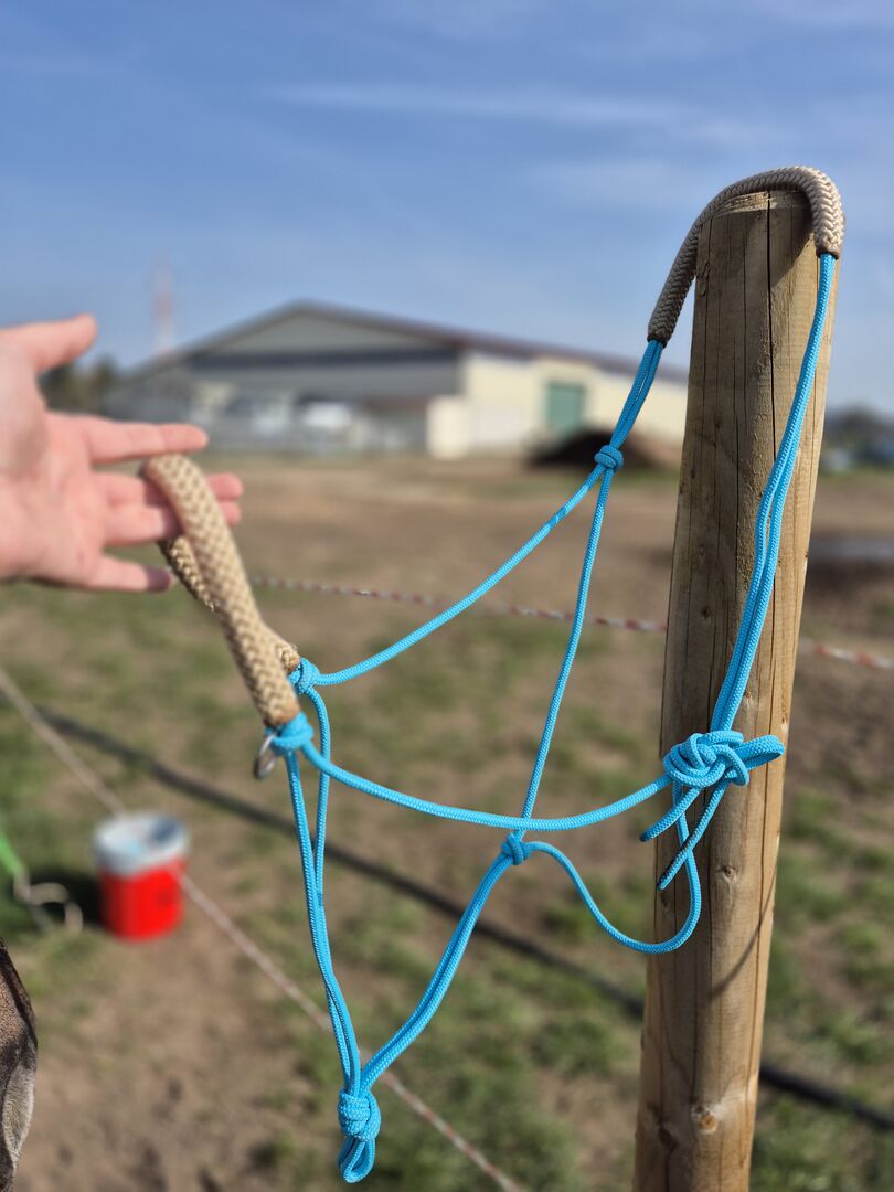 Knotted halter, Knoti WB with rings incl. reins - New beautiful knoti in turquoise with matching reins. Suitable for large heads.