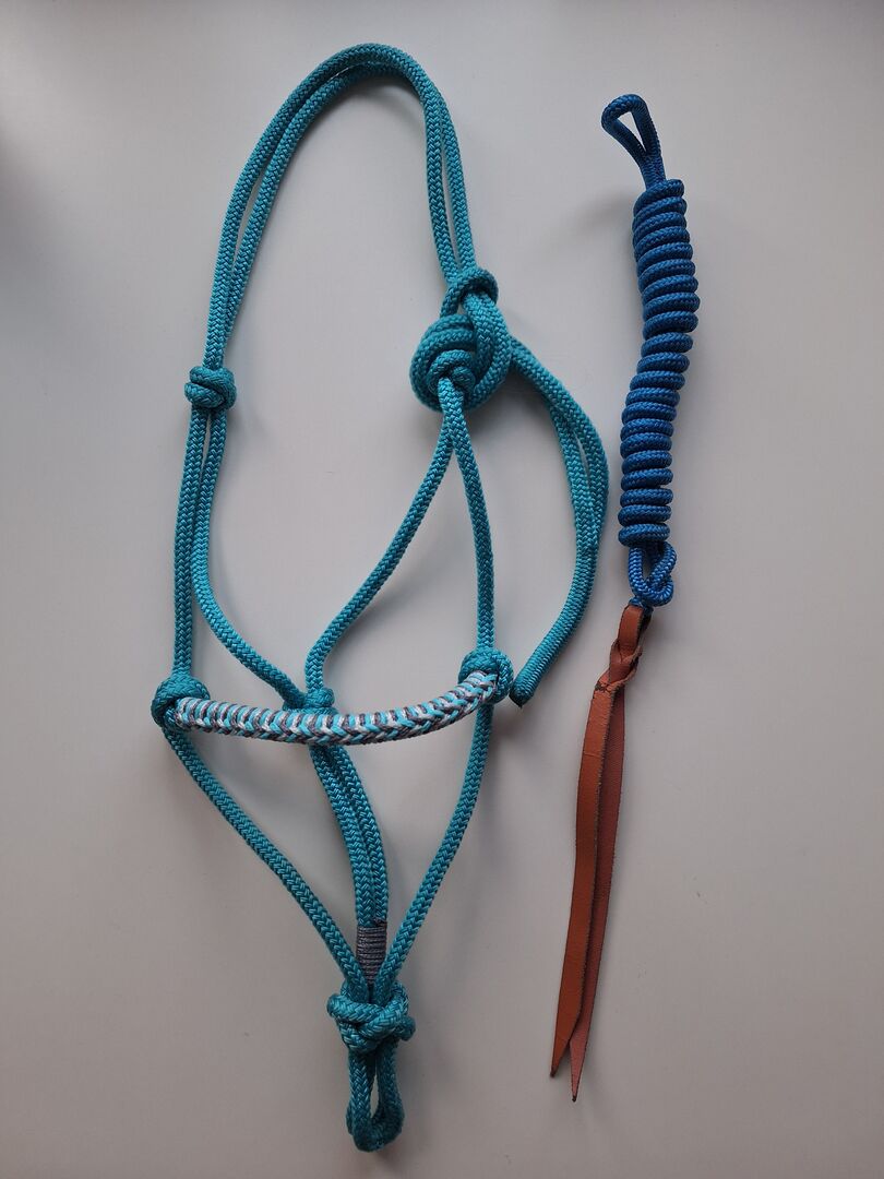 Knotted halter minishetty - Knotted halter from procavallo in turquoise, size foal/mini. Rope from Krämer (STONEDEEK Horsemanship rope) in blue and has a length of 2m.