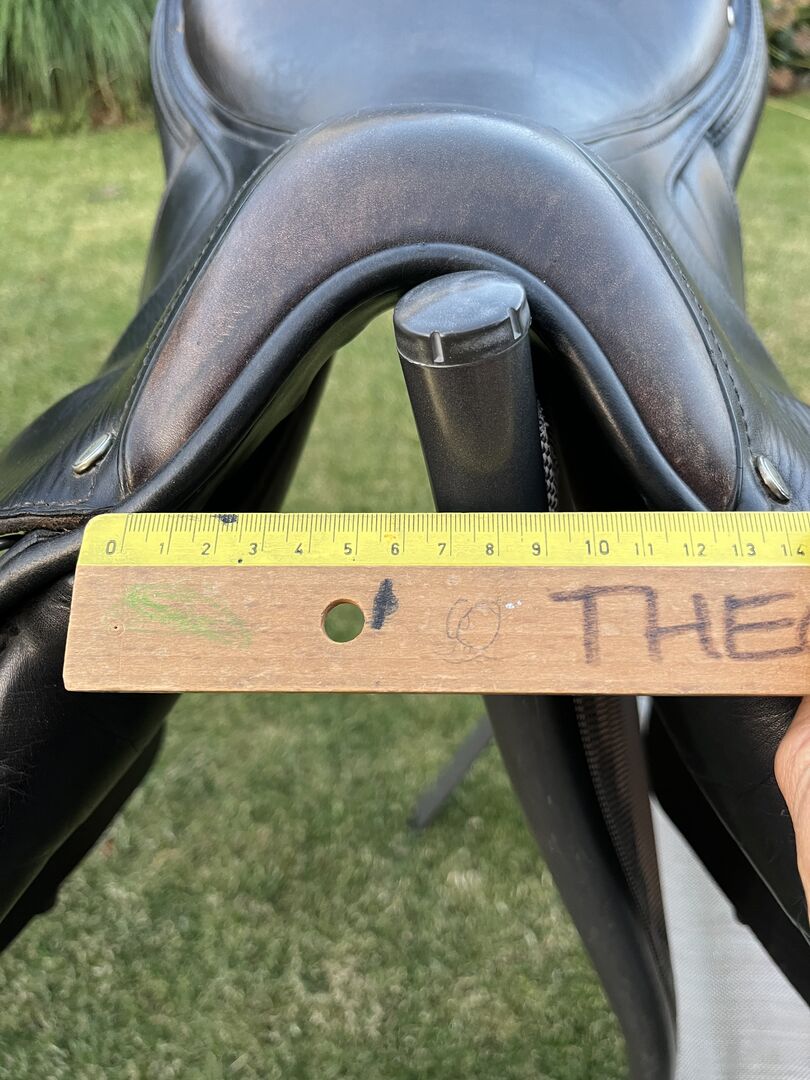 Color: black with brown seat Seat: 17.5" and very soft Age: 2015 Saddle number: 15016 EC Saddle flap: Short Knee rolls: Small Cushion: With reserve Strips: Three Chamber width: Original at 25 - adapted to a rather wider wither