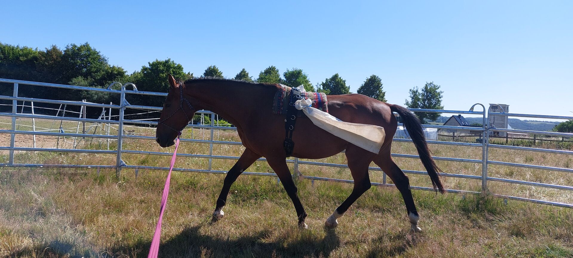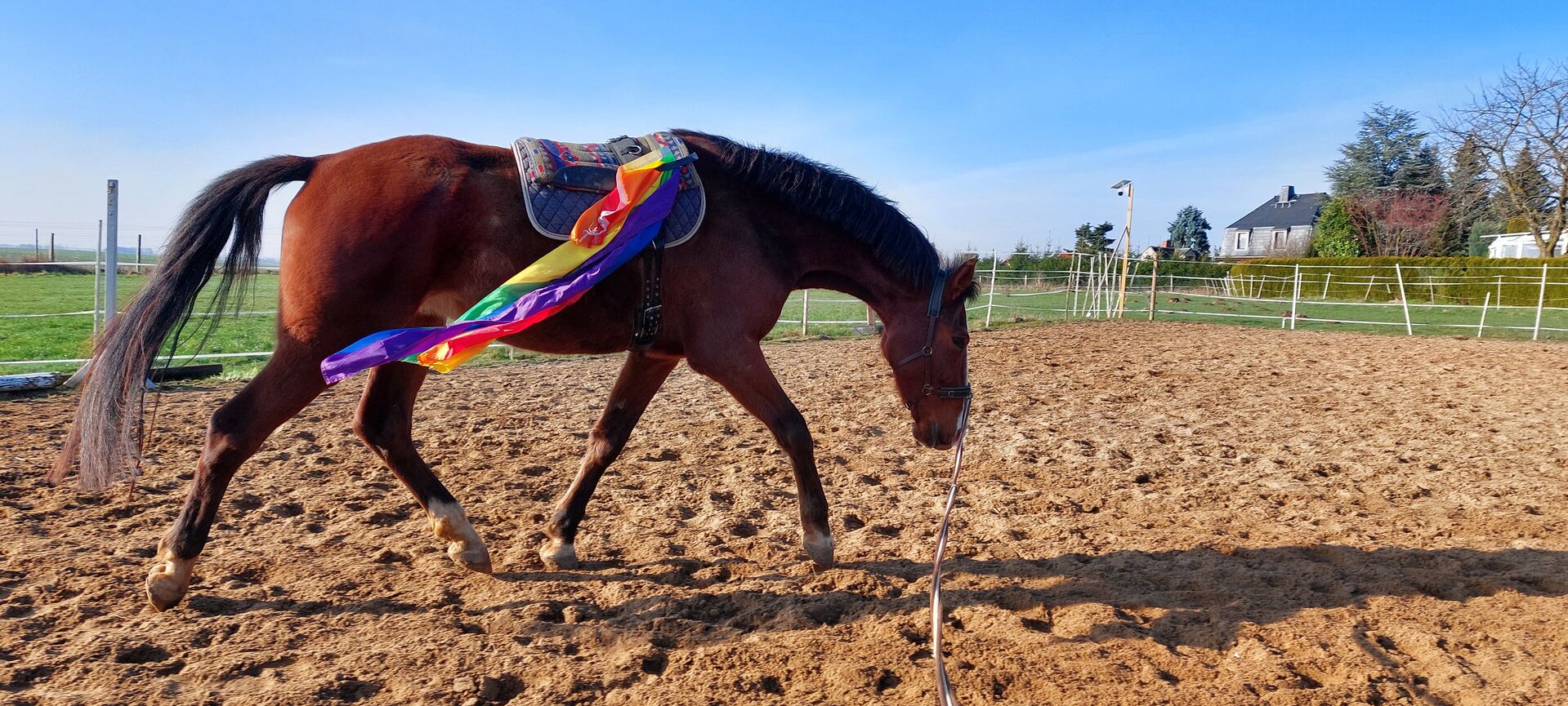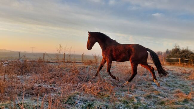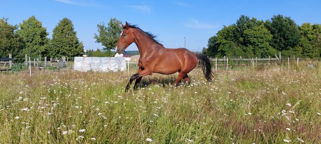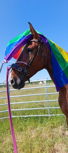 Large gelding - The gelding is 6 years old, approx. 178 cm tall and was born with me. He was allowed to grow up in peace and was gently and independently weaned from his mother at around 11 months. He has not yet been ridden as he has been growing for a long time and has changed physically time and again. However, he is already familiar with working from the ground, including with a saddle and working on two lunges from behind - all bitless. I would like to find him a nice home in an open stable with other geldings and enough space to run around and play. He has not yet learned to ride in a trailer. It is important to me that he goes into good and suitable hands. If you are seriously interested, please send me a message.