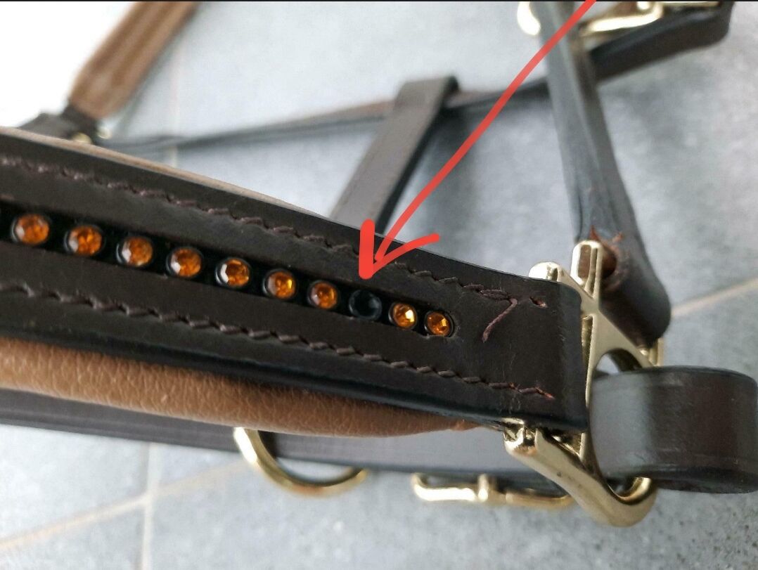 leather halter - Hello, I sell a leather halter in size pony. Top condition, like new see pictures. Only one glitter stone is missing (as seen on the picture).