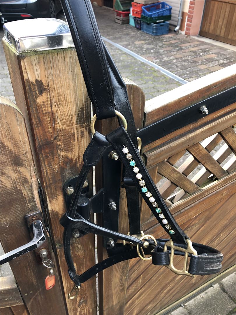 Leather halter customizable Cold Blood - Black leather halter which can be individually designed with pebbles
