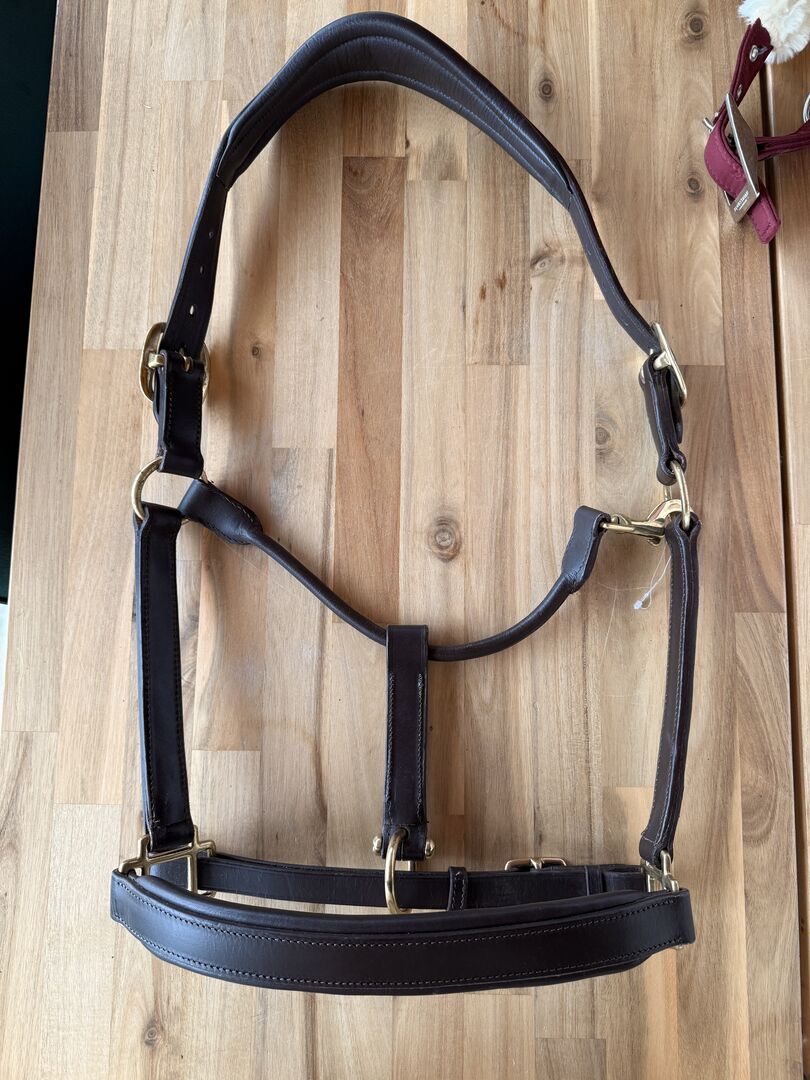 Leather halter NEW - Beautiful leather halter in brown with anatomic headpiece and engraved plaquette. Size FULL, never used as unfortunately too small