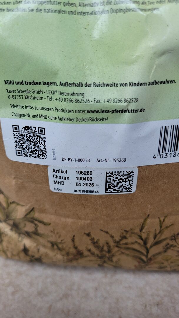 Lexa monk's pepper ground 1 kg - Opened 1 kg pack of monk's pepper (ground) from Lexa for horses. Only a few portions have been removed, so the pack is still as good as full. Has been stored in a dark, cool and dark place. Best before April 2026.